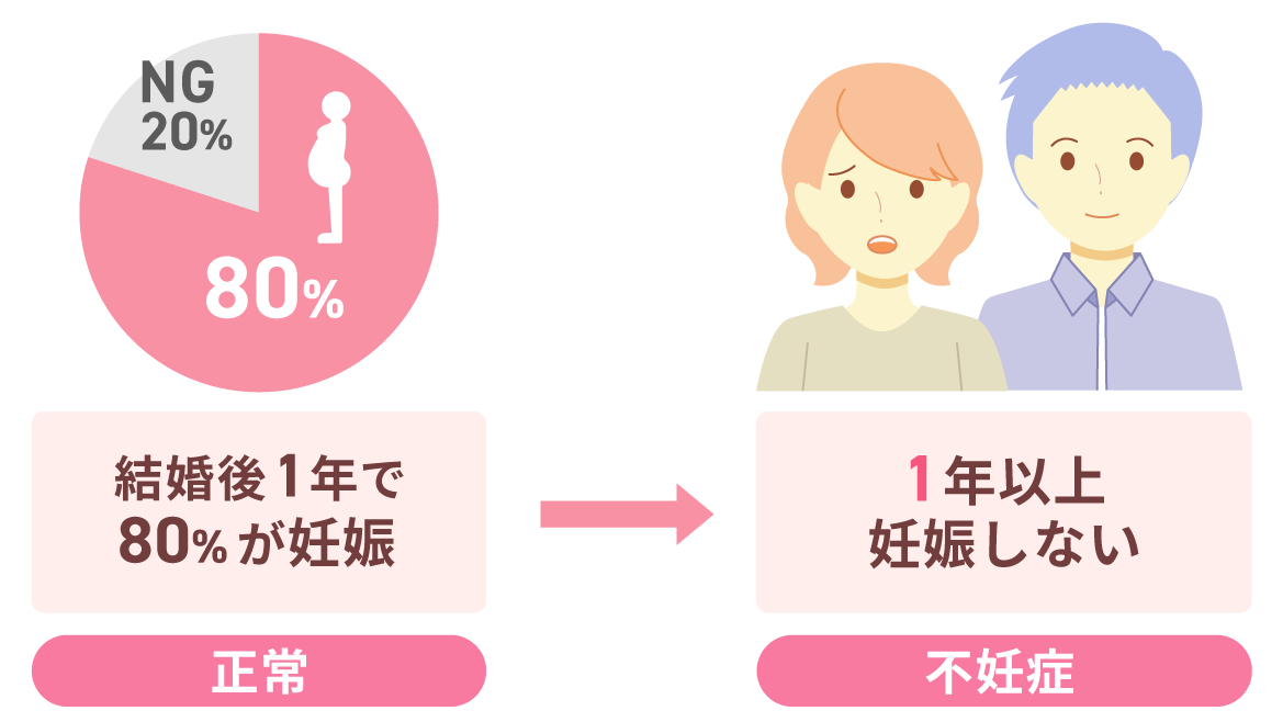 日本産科婦人科学会では、「避妊をせずに通常の性生活を営んでいるにもかかわらず、1年間妊娠に至らない状態」を「不妊症」と定義しています。ただし、女性の年齢が35歳以上の場合は、半年を目安に検査を検討することが推奨される場合もあります。