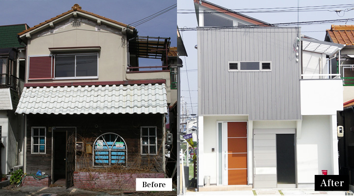 外装リノベーション:外壁塗装、屋根材の交換、サッシの交換。